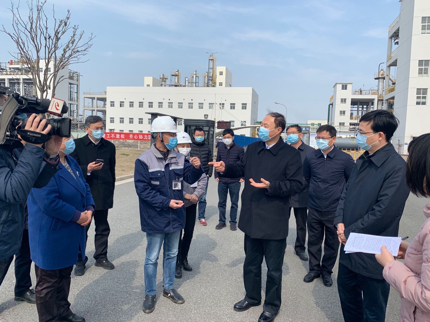 2020年2月26日,江蘇省副省長馬秋林,在淮安市市長陳之常、常務副市長張國梁、蘇淮高新區(qū)黨工委書記周守琴的陪同下,來我公司調研企業(yè)科技創(chuàng)新及疫情防控情況,在一個小時的調研中馬秋林副省長詳細詢問了企業(yè)產(chǎn)品研發(fā)、市場開發(fā)情況,實地考察了公司的兩個生產(chǎn)車間,稱贊企業(yè)“技術含量高、是名副其實的高新技術企業(yè)”,叮囑我們任何時候都要把安全生產(chǎn)放在第一位,同時做好疫情防控和環(huán)保工作,我們倍感溫暖和鼓舞!